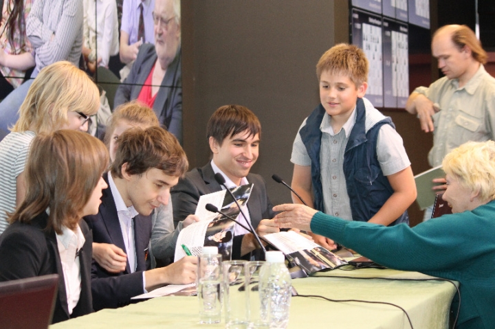 Гроссмейстеры играют, рассказывают о сыгранных партиях зрителям, раздают автографы и получают заслуженные награды.
