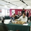 Фотоотчет Александра МОТЫЛЕВА о пятом этапе Гран-при в Пекине поначалу имеет обычную структуру: виды города, портреты участников, сценки в турнирном зале, пресс-конференции, награждение… Начиная со 131-го кадра, требуются небольшие пояснения. 131-138– фотокорреспондент забрел на турнир по го; 139-142 – он в паре с Александром Грищуком играет в настольный теннис против Бориса Гельфанда и Александра Хузмана (камерой в этот момент орудует Анастасия Карлович); 143-161 – на турнире постоянно присутствовали или временами его навещали музы – Цзюй Вэньцзюнь, Хоу Ифань, София Леко, пресс-атташе Анастасия Карлович и арбитр Анастасия Сорокина; 162-170 – сюжет «на десерт»: Василий Иванчук за минуту до начала тура вдруг осведомляется, может ли он налить себе чаю, получает заверения от судьи и партнера, что правило zero tolerance применено не будет, и отправляется к чайному столику. Все довольны.