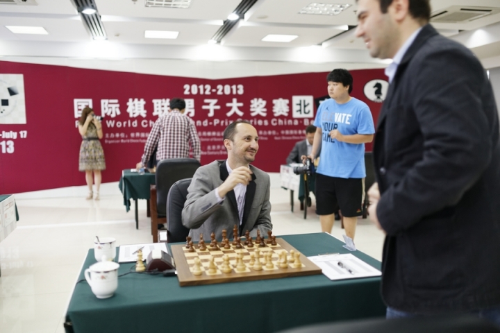 Фотоотчет Александра МОТЫЛЕВА о пятом этапе Гран-при в Пекине поначалу имеет обычную структуру: виды города, портреты участников, сценки в турнирном зале, пресс-конференции, награждение… Начиная со 131-го кадра, требуются небольшие пояснения. 131-138– фотокорреспондент забрел на турнир по го; 139-142 – он в паре с Александром Грищуком играет в настольный теннис против Бориса Гельфанда и Александра Хузмана (камерой в этот момент орудует Анастасия Карлович); 143-161 – на турнире постоянно присутствовали или временами его навещали музы – Цзюй Вэньцзюнь, Хоу Ифань, София Леко, пресс-атташе Анастасия Карлович и арбитр Анастасия Сорокина; 162-170 – сюжет «на десерт»: Василий Иванчук за минуту до начала тура вдруг осведомляется, может ли он налить себе чаю, получает заверения от судьи и партнера, что правило zero tolerance применено не будет, и отправляется к чайному столику. Все довольны.