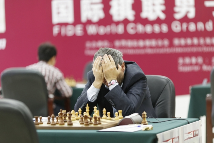 Фотоотчет Александра МОТЫЛЕВА о пятом этапе Гран-при в Пекине поначалу имеет обычную структуру: виды города, портреты участников, сценки в турнирном зале, пресс-конференции, награждение… Начиная со 131-го кадра, требуются небольшие пояснения. 131-138– фотокорреспондент забрел на турнир по го; 139-142 – он в паре с Александром Грищуком играет в настольный теннис против Бориса Гельфанда и Александра Хузмана (камерой в этот момент орудует Анастасия Карлович); 143-161 – на турнире постоянно присутствовали или временами его навещали музы – Цзюй Вэньцзюнь, Хоу Ифань, София Леко, пресс-атташе Анастасия Карлович и арбитр Анастасия Сорокина; 162-170 – сюжет «на десерт»: Василий Иванчук за минуту до начала тура вдруг осведомляется, может ли он налить себе чаю, получает заверения от судьи и партнера, что правило zero tolerance применено не будет, и отправляется к чайному столику. Все довольны.