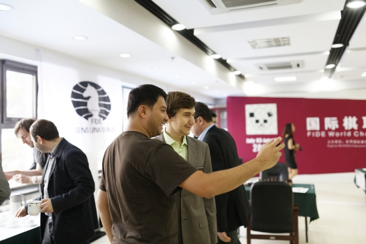 Фотоотчет Александра МОТЫЛЕВА о пятом этапе Гран-при в Пекине поначалу имеет обычную структуру: виды города, портреты участников, сценки в турнирном зале, пресс-конференции, награждение… Начиная со 131-го кадра, требуются небольшие пояснения. 131-138– фотокорреспондент забрел на турнир по го; 139-142 – он в паре с Александром Грищуком играет в настольный теннис против Бориса Гельфанда и Александра Хузмана (камерой в этот момент орудует Анастасия Карлович); 143-161 – на турнире постоянно присутствовали или временами его навещали музы – Цзюй Вэньцзюнь, Хоу Ифань, София Леко, пресс-атташе Анастасия Карлович и арбитр Анастасия Сорокина; 162-170 – сюжет «на десерт»: Василий Иванчук за минуту до начала тура вдруг осведомляется, может ли он налить себе чаю, получает заверения от судьи и партнера, что правило zero tolerance применено не будет, и отправляется к чайному столику. Все довольны.