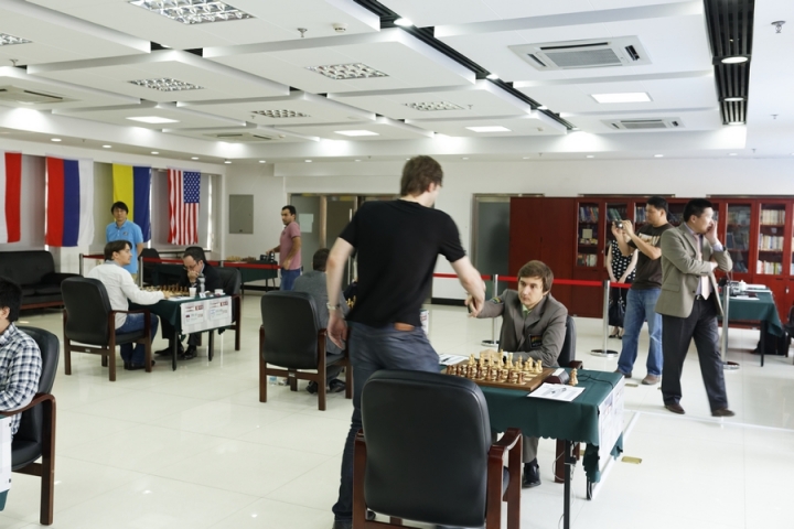 Фотоотчет Александра МОТЫЛЕВА о пятом этапе Гран-при в Пекине поначалу имеет обычную структуру: виды города, портреты участников, сценки в турнирном зале, пресс-конференции, награждение… Начиная со 131-го кадра, требуются небольшие пояснения. 131-138– фотокорреспондент забрел на турнир по го; 139-142 – он в паре с Александром Грищуком играет в настольный теннис против Бориса Гельфанда и Александра Хузмана (камерой в этот момент орудует Анастасия Карлович); 143-161 – на турнире постоянно присутствовали или временами его навещали музы – Цзюй Вэньцзюнь, Хоу Ифань, София Леко, пресс-атташе Анастасия Карлович и арбитр Анастасия Сорокина; 162-170 – сюжет «на десерт»: Василий Иванчук за минуту до начала тура вдруг осведомляется, может ли он налить себе чаю, получает заверения от судьи и партнера, что правило zero tolerance применено не будет, и отправляется к чайному столику. Все довольны.