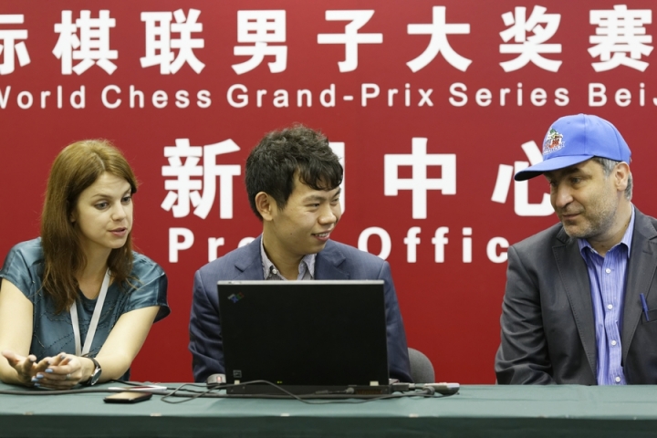 Фотоотчет Александра МОТЫЛЕВА о пятом этапе Гран-при в Пекине поначалу имеет обычную структуру: виды города, портреты участников, сценки в турнирном зале, пресс-конференции, награждение… Начиная со 131-го кадра, требуются небольшие пояснения. 131-138– фотокорреспондент забрел на турнир по го; 139-142 – он в паре с Александром Грищуком играет в настольный теннис против Бориса Гельфанда и Александра Хузмана (камерой в этот момент орудует Анастасия Карлович); 143-161 – на турнире постоянно присутствовали или временами его навещали музы – Цзюй Вэньцзюнь, Хоу Ифань, София Леко, пресс-атташе Анастасия Карлович и арбитр Анастасия Сорокина; 162-170 – сюжет «на десерт»: Василий Иванчук за минуту до начала тура вдруг осведомляется, может ли он налить себе чаю, получает заверения от судьи и партнера, что правило zero tolerance применено не будет, и отправляется к чайному столику. Все довольны.