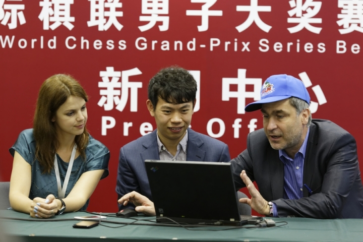 Фотоотчет Александра МОТЫЛЕВА о пятом этапе Гран-при в Пекине поначалу имеет обычную структуру: виды города, портреты участников, сценки в турнирном зале, пресс-конференции, награждение… Начиная со 131-го кадра, требуются небольшие пояснения. 131-138– фотокорреспондент забрел на турнир по го; 139-142 – он в паре с Александром Грищуком играет в настольный теннис против Бориса Гельфанда и Александра Хузмана (камерой в этот момент орудует Анастасия Карлович); 143-161 – на турнире постоянно присутствовали или временами его навещали музы – Цзюй Вэньцзюнь, Хоу Ифань, София Леко, пресс-атташе Анастасия Карлович и арбитр Анастасия Сорокина; 162-170 – сюжет «на десерт»: Василий Иванчук за минуту до начала тура вдруг осведомляется, может ли он налить себе чаю, получает заверения от судьи и партнера, что правило zero tolerance применено не будет, и отправляется к чайному столику. Все довольны.