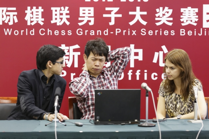 Фотоотчет Александра МОТЫЛЕВА о пятом этапе Гран-при в Пекине поначалу имеет обычную структуру: виды города, портреты участников, сценки в турнирном зале, пресс-конференции, награждение… Начиная со 131-го кадра, требуются небольшие пояснения. 131-138– фотокорреспондент забрел на турнир по го; 139-142 – он в паре с Александром Грищуком играет в настольный теннис против Бориса Гельфанда и Александра Хузмана (камерой в этот момент орудует Анастасия Карлович); 143-161 – на турнире постоянно присутствовали или временами его навещали музы – Цзюй Вэньцзюнь, Хоу Ифань, София Леко, пресс-атташе Анастасия Карлович и арбитр Анастасия Сорокина; 162-170 – сюжет «на десерт»: Василий Иванчук за минуту до начала тура вдруг осведомляется, может ли он налить себе чаю, получает заверения от судьи и партнера, что правило zero tolerance применено не будет, и отправляется к чайному столику. Все довольны.