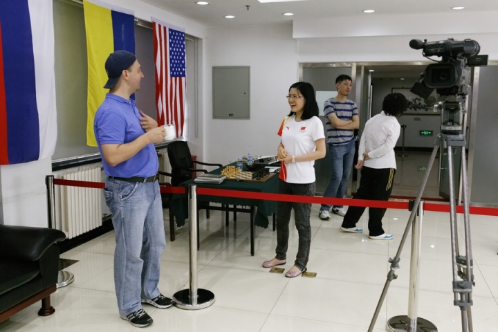 Фотоотчет Александра МОТЫЛЕВА о пятом этапе Гран-при в Пекине поначалу имеет обычную структуру: виды города, портреты участников, сценки в турнирном зале, пресс-конференции, награждение… Начиная со 131-го кадра, требуются небольшие пояснения. 131-138– фотокорреспондент забрел на турнир по го; 139-142 – он в паре с Александром Грищуком играет в настольный теннис против Бориса Гельфанда и Александра Хузмана (камерой в этот момент орудует Анастасия Карлович); 143-161 – на турнире постоянно присутствовали или временами его навещали музы – Цзюй Вэньцзюнь, Хоу Ифань, София Леко, пресс-атташе Анастасия Карлович и арбитр Анастасия Сорокина; 162-170 – сюжет «на десерт»: Василий Иванчук за минуту до начала тура вдруг осведомляется, может ли он налить себе чаю, получает заверения от судьи и партнера, что правило zero tolerance применено не будет, и отправляется к чайному столику. Все довольны.
