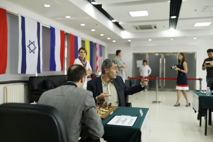 Фотоотчет Александра МОТЫЛЕВА о пятом этапе Гран-при в Пекине поначалу имеет обычную структуру: виды города, портреты участников, сценки в турнирном зале, пресс-конференции, награждение… Начиная со 131-го кадра, требуются небольшие пояснения. 131-138– фотокорреспондент забрел на турнир по го; 139-142 – он в паре с Александром Грищуком играет в настольный теннис против Бориса Гельфанда и Александра Хузмана (камерой в этот момент орудует Анастасия Карлович); 143-161 – на турнире постоянно присутствовали или временами его навещали музы – Цзюй Вэньцзюнь, Хоу Ифань, София Леко, пресс-атташе Анастасия Карлович и арбитр Анастасия Сорокина; 162-170 – сюжет «на десерт»: Василий Иванчук за минуту до начала тура вдруг осведомляется, может ли он налить себе чаю, получает заверения от судьи и партнера, что правило zero tolerance применено не будет, и отправляется к чайному столику. Все довольны.