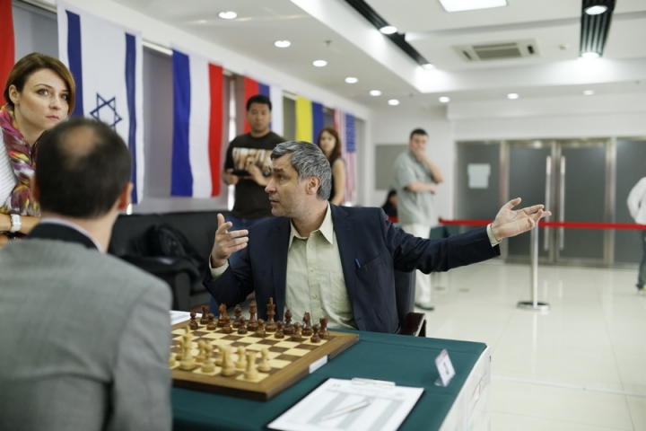 Фотоотчет Александра МОТЫЛЕВА о пятом этапе Гран-при в Пекине поначалу имеет обычную структуру: виды города, портреты участников, сценки в турнирном зале, пресс-конференции, награждение… Начиная со 131-го кадра, требуются небольшие пояснения. 131-138– фотокорреспондент забрел на турнир по го; 139-142 – он в паре с Александром Грищуком играет в настольный теннис против Бориса Гельфанда и Александра Хузмана (камерой в этот момент орудует Анастасия Карлович); 143-161 – на турнире постоянно присутствовали или временами его навещали музы – Цзюй Вэньцзюнь, Хоу Ифань, София Леко, пресс-атташе Анастасия Карлович и арбитр Анастасия Сорокина; 162-170 – сюжет «на десерт»: Василий Иванчук за минуту до начала тура вдруг осведомляется, может ли он налить себе чаю, получает заверения от судьи и партнера, что правило zero tolerance применено не будет, и отправляется к чайному столику. Все довольны.