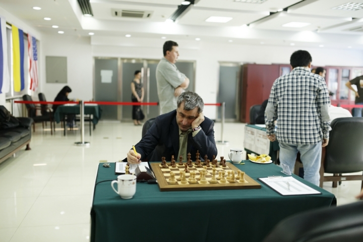 Фотоотчет Александра МОТЫЛЕВА о пятом этапе Гран-при в Пекине поначалу имеет обычную структуру: виды города, портреты участников, сценки в турнирном зале, пресс-конференции, награждение… Начиная со 131-го кадра, требуются небольшие пояснения. 131-138– фотокорреспондент забрел на турнир по го; 139-142 – он в паре с Александром Грищуком играет в настольный теннис против Бориса Гельфанда и Александра Хузмана (камерой в этот момент орудует Анастасия Карлович); 143-161 – на турнире постоянно присутствовали или временами его навещали музы – Цзюй Вэньцзюнь, Хоу Ифань, София Леко, пресс-атташе Анастасия Карлович и арбитр Анастасия Сорокина; 162-170 – сюжет «на десерт»: Василий Иванчук за минуту до начала тура вдруг осведомляется, может ли он налить себе чаю, получает заверения от судьи и партнера, что правило zero tolerance применено не будет, и отправляется к чайному столику. Все довольны.