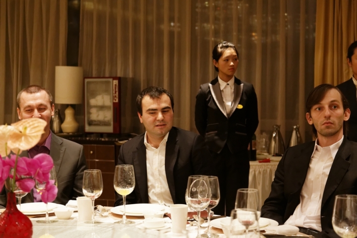 Фотоотчет Александра МОТЫЛЕВА о пятом этапе Гран-при в Пекине поначалу имеет обычную структуру: виды города, портреты участников, сценки в турнирном зале, пресс-конференции, награждение… Начиная со 131-го кадра, требуются небольшие пояснения. 131-138– фотокорреспондент забрел на турнир по го; 139-142 – он в паре с Александром Грищуком играет в настольный теннис против Бориса Гельфанда и Александра Хузмана (камерой в этот момент орудует Анастасия Карлович); 143-161 – на турнире постоянно присутствовали или временами его навещали музы – Цзюй Вэньцзюнь, Хоу Ифань, София Леко, пресс-атташе Анастасия Карлович и арбитр Анастасия Сорокина; 162-170 – сюжет «на десерт»: Василий Иванчук за минуту до начала тура вдруг осведомляется, может ли он налить себе чаю, получает заверения от судьи и партнера, что правило zero tolerance применено не будет, и отправляется к чайному столику. Все довольны.