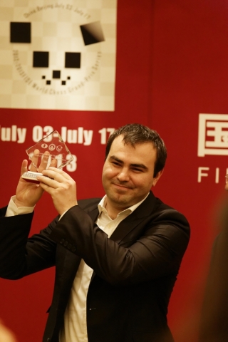 Фотоотчет Александра МОТЫЛЕВА о пятом этапе Гран-при в Пекине поначалу имеет обычную структуру: виды города, портреты участников, сценки в турнирном зале, пресс-конференции, награждение… Начиная со 131-го кадра, требуются небольшие пояснения. 131-138– фотокорреспондент забрел на турнир по го; 139-142 – он в паре с Александром Грищуком играет в настольный теннис против Бориса Гельфанда и Александра Хузмана (камерой в этот момент орудует Анастасия Карлович); 143-161 – на турнире постоянно присутствовали или временами его навещали музы – Цзюй Вэньцзюнь, Хоу Ифань, София Леко, пресс-атташе Анастасия Карлович и арбитр Анастасия Сорокина; 162-170 – сюжет «на десерт»: Василий Иванчук за минуту до начала тура вдруг осведомляется, может ли он налить себе чаю, получает заверения от судьи и партнера, что правило zero tolerance применено не будет, и отправляется к чайному столику. Все довольны.