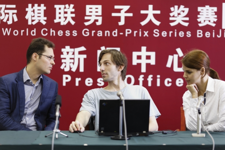 Фотоотчет Александра МОТЫЛЕВА о пятом этапе Гран-при в Пекине поначалу имеет обычную структуру: виды города, портреты участников, сценки в турнирном зале, пресс-конференции, награждение… Начиная со 131-го кадра, требуются небольшие пояснения. 131-138– фотокорреспондент забрел на турнир по го; 139-142 – он в паре с Александром Грищуком играет в настольный теннис против Бориса Гельфанда и Александра Хузмана (камерой в этот момент орудует Анастасия Карлович); 143-161 – на турнире постоянно присутствовали или временами его навещали музы – Цзюй Вэньцзюнь, Хоу Ифань, София Леко, пресс-атташе Анастасия Карлович и арбитр Анастасия Сорокина; 162-170 – сюжет «на десерт»: Василий Иванчук за минуту до начала тура вдруг осведомляется, может ли он налить себе чаю, получает заверения от судьи и партнера, что правило zero tolerance применено не будет, и отправляется к чайному столику. Все довольны.