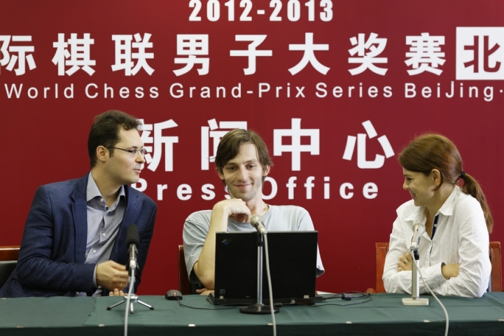 Фотоотчет Александра МОТЫЛЕВА о пятом этапе Гран-при в Пекине поначалу имеет обычную структуру: виды города, портреты участников, сценки в турнирном зале, пресс-конференции, награждение… Начиная со 131-го кадра, требуются небольшие пояснения. 131-138– фотокорреспондент забрел на турнир по го; 139-142 – он в паре с Александром Грищуком играет в настольный теннис против Бориса Гельфанда и Александра Хузмана (камерой в этот момент орудует Анастасия Карлович); 143-161 – на турнире постоянно присутствовали или временами его навещали музы – Цзюй Вэньцзюнь, Хоу Ифань, София Леко, пресс-атташе Анастасия Карлович и арбитр Анастасия Сорокина; 162-170 – сюжет «на десерт»: Василий Иванчук за минуту до начала тура вдруг осведомляется, может ли он налить себе чаю, получает заверения от судьи и партнера, что правило zero tolerance применено не будет, и отправляется к чайному столику. Все довольны.