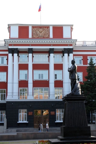 Вот и Ильич. Любопытно, что герб на здании советский, а флаг – российский