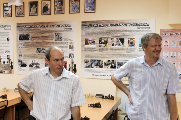 20 июля, в Международный день шахмат на малой сцене барнаульского Молодежного театра имени Валерия Золотухина прошел «Алтайский рапид» – традиционный турнир с участием сильнейших шахматистов края и приглашенных мастеров и гроссмейстеров. Гостеприимные хозяева Артем Поломошнов и Максим Герасимюк устроили небольшую экскурсию по городу, показали просторный краевой шахматный клуб, который открылся недавно в самом центре Барнаула на улице Гоголя (почти как ЦДШ в Москве!). Своими впечатлениями делится один из гостей праздника журналист Владимир БАРСКИЙ.
