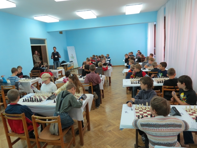 Судья детского турнира Максим Коваленко, родной брат нынешнего лидера латвийской сборной гроссмейстера Игоря Коваленко, объявляет начало очередного тура