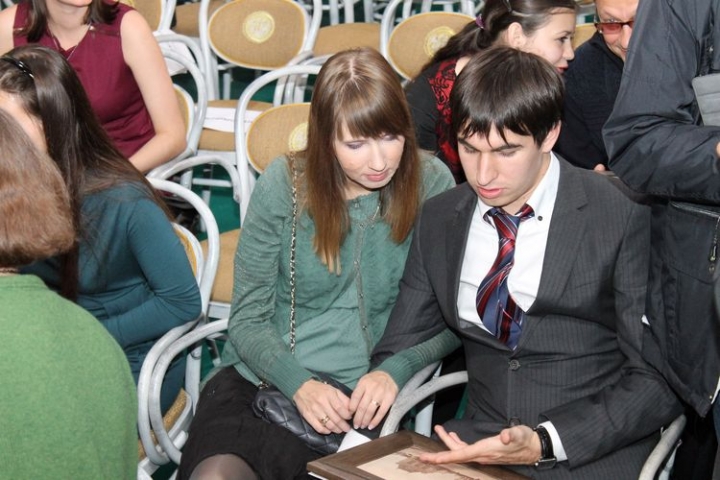 Когда здоровое любопытство представителей прессы было удовлетворено, пришло время собственно церемонии. Жеребьевка напоминала поход на вернисаж: на сцене висел десяток картин с видами Нижнего, гроссмейстер выбирал наиболее приглянувшийся пейзаж и на обороте находил стартовый номер. Рейтинг-фаворит Владимир Крамник вышел первым, долго разглядывал экспозицию и, наконец, под дружный смех зала нашел композицию № 1. Шахматисты вели себя по-разному: кто-то долго приглядывался (хочется добавить – и приценивался), кто-то моментально делал свой выбор. Меньше всех времени потратил действующий чемпион страны Дмитрий Андрейкин: наверное, не случайно он так здорово играет в блиц и быстрые шахматы!