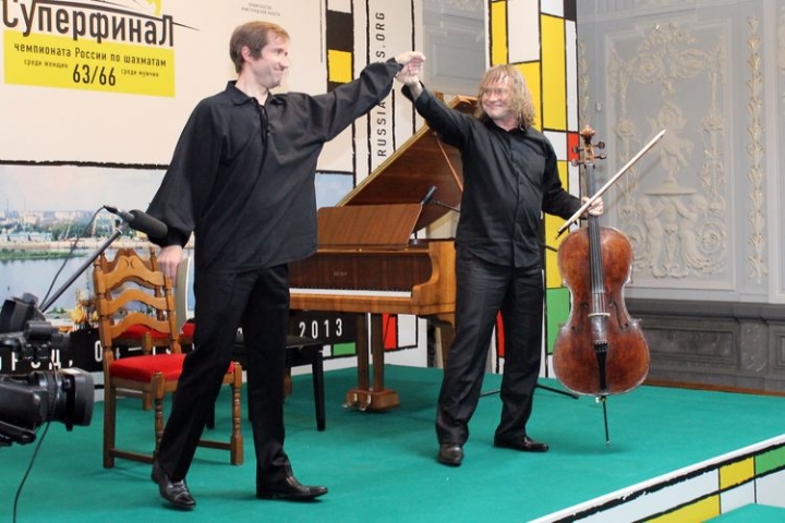 Стройные девушки на сцене срезали веревочки и, не упаковывая, отдавали картины игрокам. Когда все они обзавелись красочными сувенирами, начался праздничный концерт. Вначале мужской хор местного училища спел о том, как прекрасна, обильна и щедра нижегородская земля, а затем на сцену поднялись виртуозы – великий пианист Николай Луганский и великий виолончелист Александр Князев. Они блистательно, вдохновенно, на одном дыхании исполнили произведения Сергея Рахманинова и Иоганнеса Брамса, за что удостоились бурной овации благодарных слушателей.