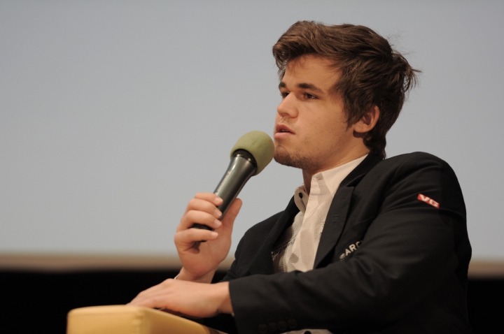8 апреля Магнус Карлсен по приглашению Ассоциации выпускников Физтех-Союз и Runa Capital.гостил в Долгопрудном у студентов и преподавателей Московского физико-технического института. Чемпион мира ответил на многочисленные вопросы любителей шахмат и дал сеанс одновременной игры. Ведущей вечера была Тина Канделаки.
