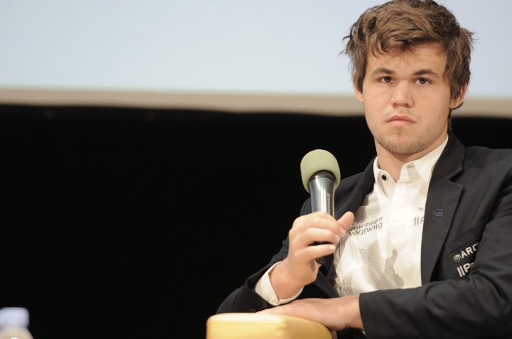 8 апреля Магнус Карлсен по приглашению Ассоциации выпускников Физтех-Союз и Runa Capital.гостил в Долгопрудном у студентов и преподавателей Московского физико-технического института. Чемпион мира ответил на многочисленные вопросы любителей шахмат и дал сеанс одновременной игры. Ведущей вечера была Тина Канделаки.