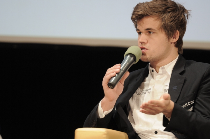 8 апреля Магнус Карлсен по приглашению Ассоциации выпускников Физтех-Союз и Runa Capital.гостил в Долгопрудном у студентов и преподавателей Московского физико-технического института. Чемпион мира ответил на многочисленные вопросы любителей шахмат и дал сеанс одновременной игры. Ведущей вечера была Тина Канделаки.