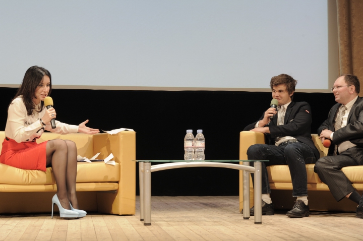 8 апреля Магнус Карлсен по приглашению Ассоциации выпускников Физтех-Союз и Runa Capital.гостил в Долгопрудном у студентов и преподавателей Московского физико-технического института. Чемпион мира ответил на многочисленные вопросы любителей шахмат и дал сеанс одновременной игры. Ведущей вечера была Тина Канделаки.