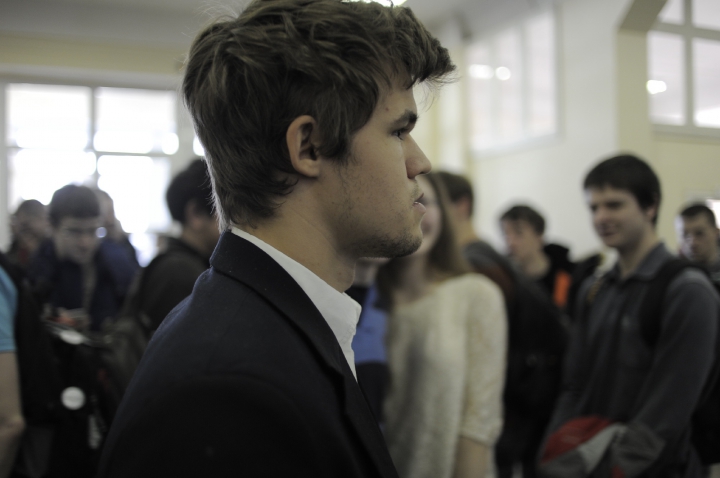 8 апреля Магнус Карлсен по приглашению Ассоциации выпускников Физтех-Союз и Runa Capital.гостил в Долгопрудном у студентов и преподавателей Московского физико-технического института. Чемпион мира ответил на многочисленные вопросы любителей шахмат и дал сеанс одновременной игры. Ведущей вечера была Тина Канделаки.