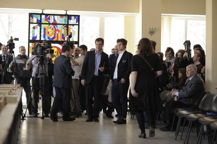8 апреля Магнус Карлсен по приглашению Ассоциации выпускников Физтех-Союз и Runa Capital.гостил в Долгопрудном у студентов и преподавателей Московского физико-технического института. Чемпион мира ответил на многочисленные вопросы любителей шахмат и дал сеанс одновременной игры. Ведущей вечера была Тина Канделаки.