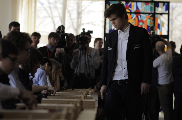 8 апреля Магнус Карлсен по приглашению Ассоциации выпускников Физтех-Союз и Runa Capital.гостил в Долгопрудном у студентов и преподавателей Московского физико-технического института. Чемпион мира ответил на многочисленные вопросы любителей шахмат и дал сеанс одновременной игры. Ведущей вечера была Тина Канделаки.