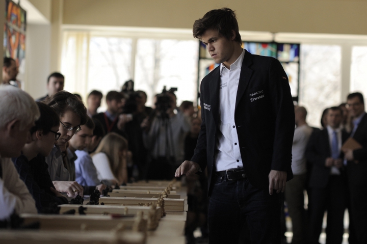 8 апреля Магнус Карлсен по приглашению Ассоциации выпускников Физтех-Союз и Runa Capital.гостил в Долгопрудном у студентов и преподавателей Московского физико-технического института. Чемпион мира ответил на многочисленные вопросы любителей шахмат и дал сеанс одновременной игры. Ведущей вечера была Тина Канделаки.