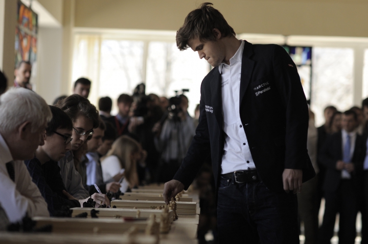 8 апреля Магнус Карлсен по приглашению Ассоциации выпускников Физтех-Союз и Runa Capital.гостил в Долгопрудном у студентов и преподавателей Московского физико-технического института. Чемпион мира ответил на многочисленные вопросы любителей шахмат и дал сеанс одновременной игры. Ведущей вечера была Тина Канделаки.