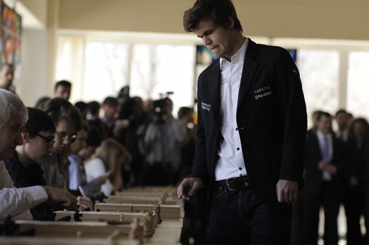 8 апреля Магнус Карлсен по приглашению Ассоциации выпускников Физтех-Союз и Runa Capital.гостил в Долгопрудном у студентов и преподавателей Московского физико-технического института. Чемпион мира ответил на многочисленные вопросы любителей шахмат и дал сеанс одновременной игры. Ведущей вечера была Тина Канделаки.
