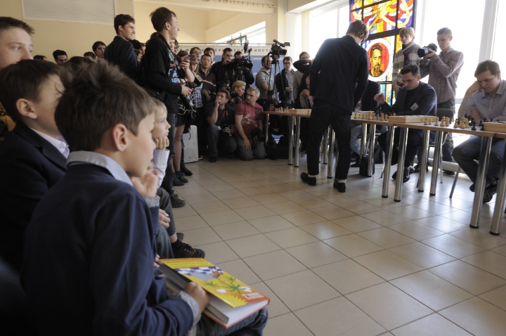 8 апреля Магнус Карлсен по приглашению Ассоциации выпускников Физтех-Союз и Runa Capital.гостил в Долгопрудном у студентов и преподавателей Московского физико-технического института. Чемпион мира ответил на многочисленные вопросы любителей шахмат и дал сеанс одновременной игры. Ведущей вечера была Тина Канделаки.
