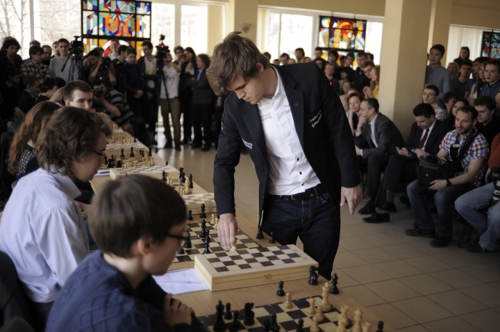 8 апреля Магнус Карлсен по приглашению Ассоциации выпускников Физтех-Союз и Runa Capital.гостил в Долгопрудном у студентов и преподавателей Московского физико-технического института. Чемпион мира ответил на многочисленные вопросы любителей шахмат и дал сеанс одновременной игры. Ведущей вечера была Тина Канделаки.