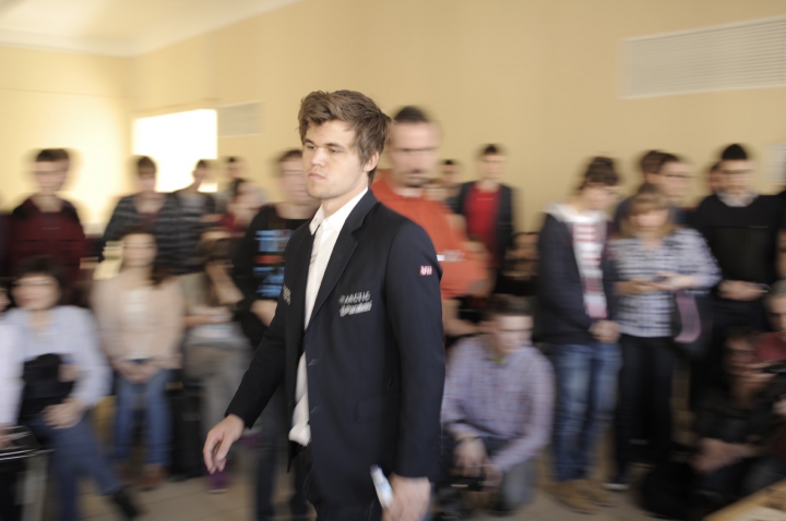 8 апреля Магнус Карлсен по приглашению Ассоциации выпускников Физтех-Союз и Runa Capital.гостил в Долгопрудном у студентов и преподавателей Московского физико-технического института. Чемпион мира ответил на многочисленные вопросы любителей шахмат и дал сеанс одновременной игры. Ведущей вечера была Тина Канделаки.