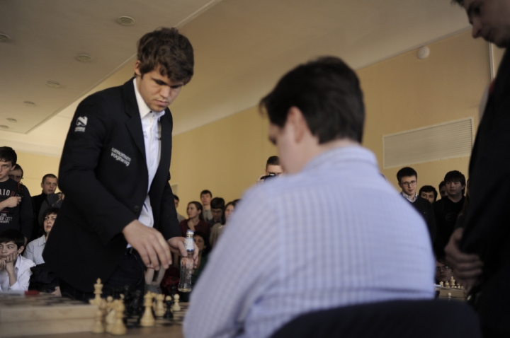 8 апреля Магнус Карлсен по приглашению Ассоциации выпускников Физтех-Союз и Runa Capital.гостил в Долгопрудном у студентов и преподавателей Московского физико-технического института. Чемпион мира ответил на многочисленные вопросы любителей шахмат и дал сеанс одновременной игры. Ведущей вечера была Тина Канделаки.