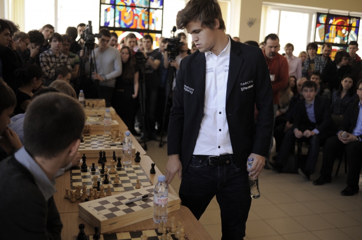 8 апреля Магнус Карлсен по приглашению Ассоциации выпускников Физтех-Союз и Runa Capital.гостил в Долгопрудном у студентов и преподавателей Московского физико-технического института. Чемпион мира ответил на многочисленные вопросы любителей шахмат и дал сеанс одновременной игры. Ведущей вечера была Тина Канделаки.