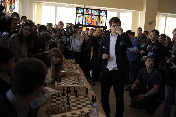 8 апреля Магнус Карлсен по приглашению Ассоциации выпускников Физтех-Союз и Runa Capital.гостил в Долгопрудном у студентов и преподавателей Московского физико-технического института. Чемпион мира ответил на многочисленные вопросы любителей шахмат и дал сеанс одновременной игры. Ведущей вечера была Тина Канделаки.