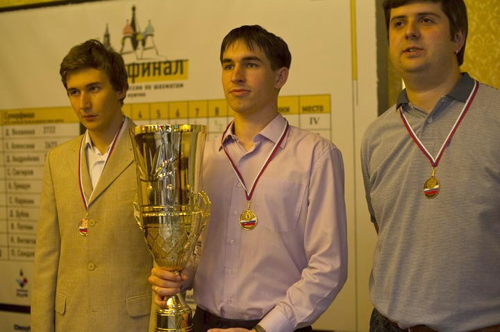 Золотые медали чемпионов России в этом году уехали в Саратов. У женщин Наталья Погонина уверенно провела весь турнир и после короткой ничьей в последнем туре стала недосягаемой для преследовательниц. У мужчин ни один участник не может похвастаться тем, что уверенно провел весь турнир. Судьба титула решилась в дополнительном турнире, где участвовало более половины основного. В итоге победитель высшей лиги Дмитрий Андрейкин сделал золотой дубль – достижение, достойное восхищения.