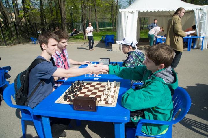 На майские праздники в Москве прошли чемпионаты столицы по быстрым шахматам, блицтурниры на свежем воздухе и сеансы одновременной игры. В выигрыше остались все.
