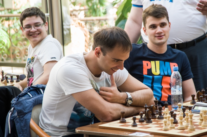 ...и сыграть разминочную партию. Александр Рязанцев и Максим Матлаков