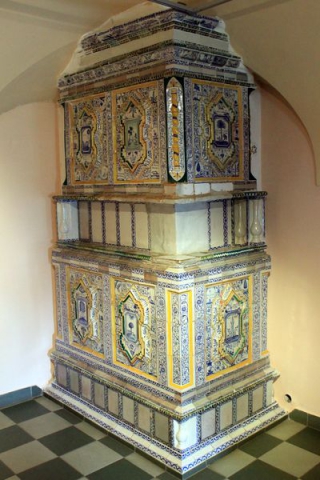 Экспонат музея - изразцовая печь. На двух следующих снимках представлены ее фрагменты