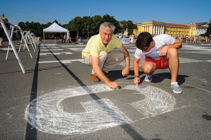 20 июля, в Международный день шахмат на Дворцовой площади в Санкт-Петербурге состоялось представление «Живые шахматы». К расчерчиванию площади мелками приглашались все петербуржцы. Партию разыгрывали Никита Витюгов и Валерий Попов. Костюмы для исполнителей изготовила по собственным эскизам молодой дизайнер Ксения ZENKA Зенская. Неподалеку от большого поля была обустроена территория, на которой любой желающий мог поиграть в шахматы (20 столов) и другие настольные игры (5 столов).