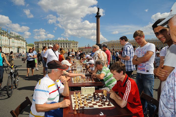 20 июля, в Международный день шахмат на Дворцовой площади в Санкт-Петербурге состоялось представление «Живые шахматы». К расчерчиванию площади мелками приглашались все петербуржцы. Партию разыгрывали Никита Витюгов и Валерий Попов. Костюмы для исполнителей изготовила по собственным эскизам молодой дизайнер Ксения ZENKA Зенская. Неподалеку от большого поля была обустроена территория, на которой любой желающий мог поиграть в шахматы (20 столов) и другие настольные игры (5 столов).