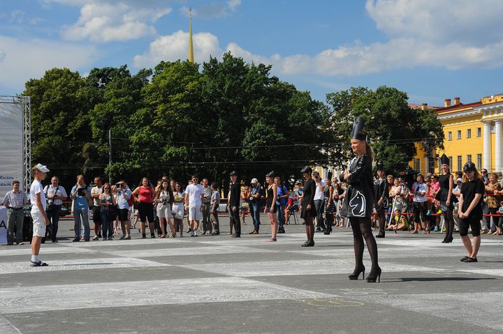 20 июля, в Международный день шахмат на Дворцовой площади в Санкт-Петербурге состоялось представление «Живые шахматы». К расчерчиванию площади мелками приглашались все петербуржцы. Партию разыгрывали Никита Витюгов и Валерий Попов. Костюмы для исполнителей изготовила по собственным эскизам молодой дизайнер Ксения ZENKA Зенская. Неподалеку от большого поля была обустроена территория, на которой любой желающий мог поиграть в шахматы (20 столов) и другие настольные игры (5 столов).