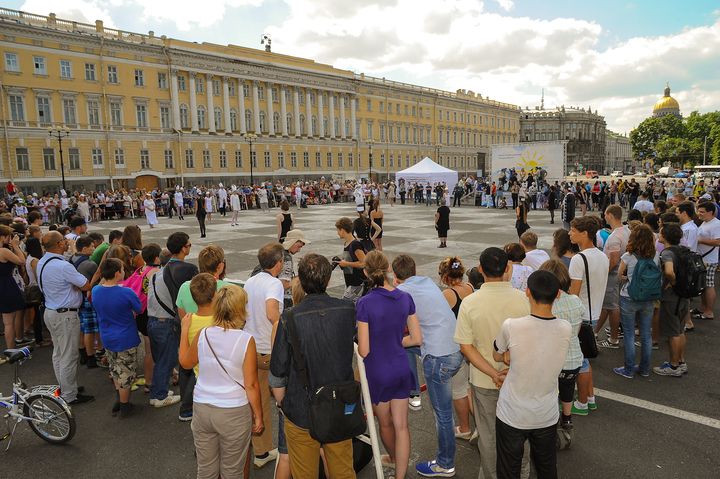 20 июля, в Международный день шахмат на Дворцовой площади в Санкт-Петербурге состоялось представление «Живые шахматы». К расчерчиванию площади мелками приглашались все петербуржцы. Партию разыгрывали Никита Витюгов и Валерий Попов. Костюмы для исполнителей изготовила по собственным эскизам молодой дизайнер Ксения ZENKA Зенская. Неподалеку от большого поля была обустроена территория, на которой любой желающий мог поиграть в шахматы (20 столов) и другие настольные игры (5 столов).