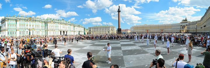 20 июля, в Международный день шахмат на Дворцовой площади в Санкт-Петербурге состоялось представление «Живые шахматы». К расчерчиванию площади мелками приглашались все петербуржцы. Партию разыгрывали Никита Витюгов и Валерий Попов. Костюмы для исполнителей изготовила по собственным эскизам молодой дизайнер Ксения ZENKA Зенская. Неподалеку от большого поля была обустроена территория, на которой любой желающий мог поиграть в шахматы (20 столов) и другие настольные игры (5 столов).