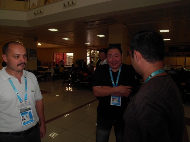В центре – первая доска сборной Канады Батор Самбуев. Слева – Марат Джумаев (Узбекистан).