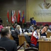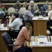 Кадры первой половины турнира. Участники, судьи, секунданты, журналисты, зрители.