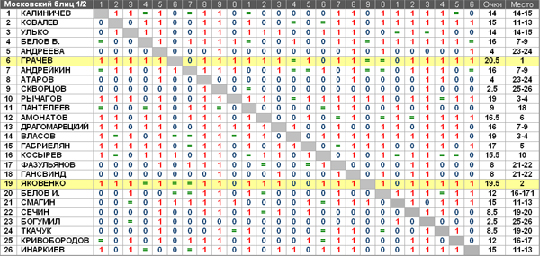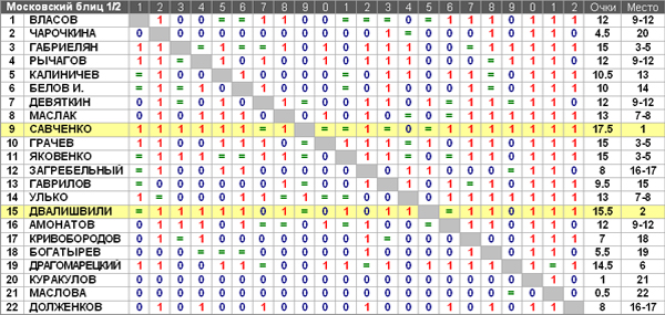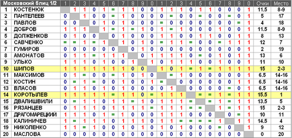 Матч за 2-е место: Рязанцев – Шипов 1/2, Шипов – Рязанцев 1-0